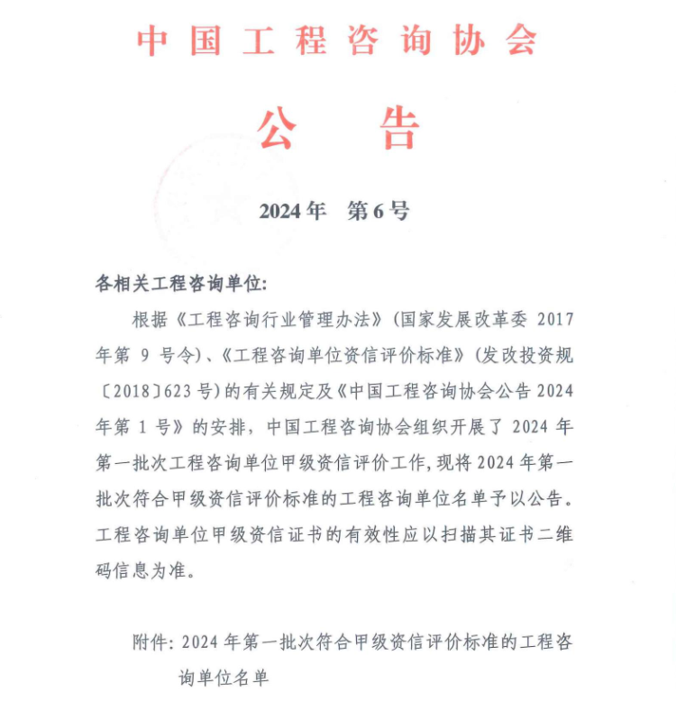 近日,aitiyu爱体育(中国)aitiyu爱体育(中国)顺利通过中国工程咨询协会2024年第一批次工程咨询单位甲级资信评价,再次成为四川省唯一同时持有工程咨询甲级综合资信、PPP甲级专项资信和甲级专业资信的综合性咨询机构。